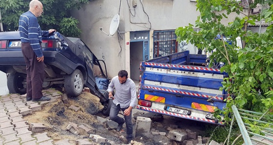 Başakşehir Altınşehir Barbaros Caddesi üzerinde seyir halinde olan 34 CNP 80 plakalı vinç yüklü kamyonet direksiyon hakimiyetini kaybederek, 34 BAN 802 plakalı araca çarptı. Hızını alamayan kamyonet, yol kenarında bulunan bir evin bahçesine uçtu.