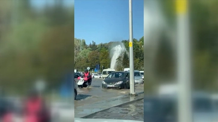 Metrelerce yükseğe fışkıran tazyikli su, çevreden de görüldü.