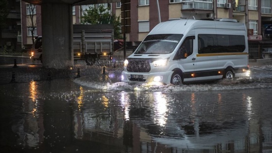 Ankara'da gece başlayan gök gürültülü sağanak nedeniyle bir binanın istinat duvarı çöktü, çok sayıda ev ve iş yerini su bastı.