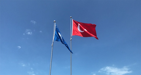 Yapılan protokol konuşmalarının ardından Kaymakam Yasin Öztrük, İl Müdürü Özcan Budak, Belediye Başkan Yardımcılarının katılımı ile Mavi Bayrak Çuhallı plajı gönderine çekildi.