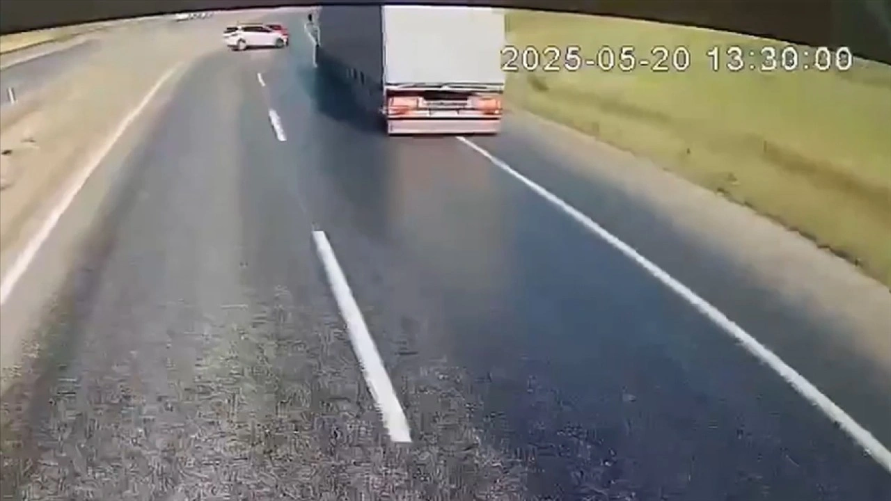 Kaza anı bir yolcu otobüsünün güvenlik kamerasınca kaydedildi.
