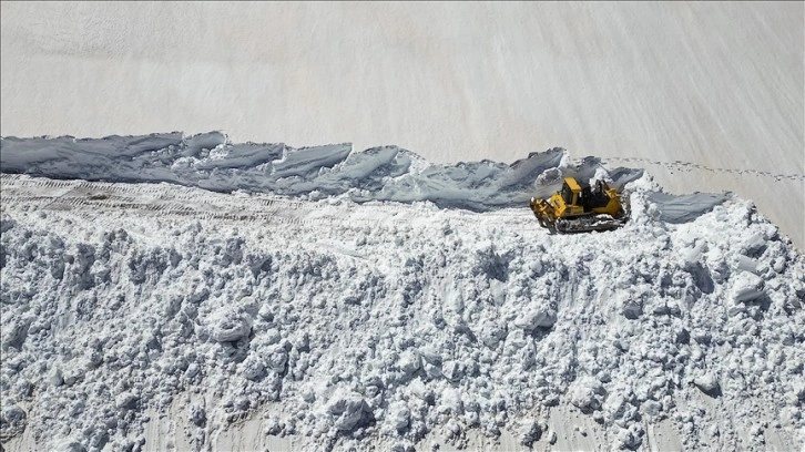 Zorlu doğa koşullarında 12 Nisan'dan beri çalışma yürüten ekipler, kar kalınlığının yer yer iş makinesinin boyunu aştığı noktalarda güçlükle ilerleyebiliyor.