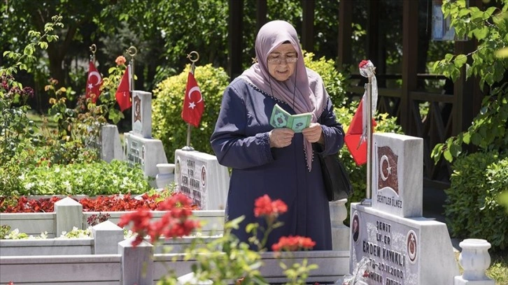 Bayramın ikinci gününde sabahtan itibaren şehitliğe gelen aileler, şehitlerinin mezarları başında Kur'an-ı Kerim okudu, dua etti.