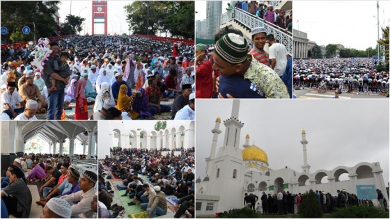 Kazakistan'da Müslümanlar, bayram namazını kılarak ve dua ederek Ramazan Bayramı kutlamalarına başladı.