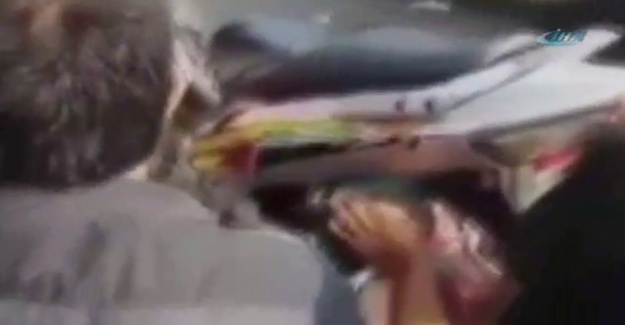 Minik bebek motosikletin tekerleğine sıkıştı, dakikalarca kurtarılmayı bekledi.