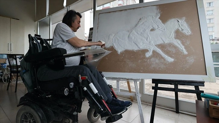 Yüzde 92 bedensel engeli bulunduğunu anlatan Şirin, parmaklarında sıkma kuvveti olmadığı için aparatlarla spor ve resim yaptığını söyledi.