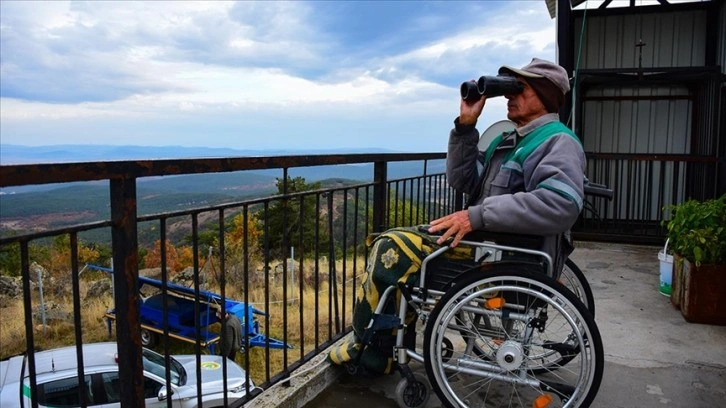 "Eskişehir Orman Bölge Müdürlüğü benim için kuleye asansör yaptırdı. Onlardan Allah razı olsun. 33 yıldır bu kuledeyim. Ormanları sevdiğim için ayrılamadım. Buranın havası temiz. Gözlerim de çok iyi görüyor. Çifteler ilçesi sınırında yangınlar olmuştu, oralardaki dumanı bile fark edip yetkililere bildirdim. Dürbünle ormanı gözetlediğim sırada daha duman çıkarken gördüm, bildirmemin ardından yangın büyümeden söndürüldü. Sağlam bir insandan daha sağlıklıyım. Sabah saat 09.00'da kuledeki balkona çıkarım. Hava kararana kadar dışarıyı, ormanlık alanları gözetlerim. Kuleye alıştığım için günün nasıl geçtiğini anlayamıyordum. Köyde olsaydım canım sıkılırdı. Burada hiç canım sıkılmıyor. Artık emekli oldum. Bundan sonra evde oturacağım. Engelli olmasaydım başka bir yerde iş yapabilirdim."