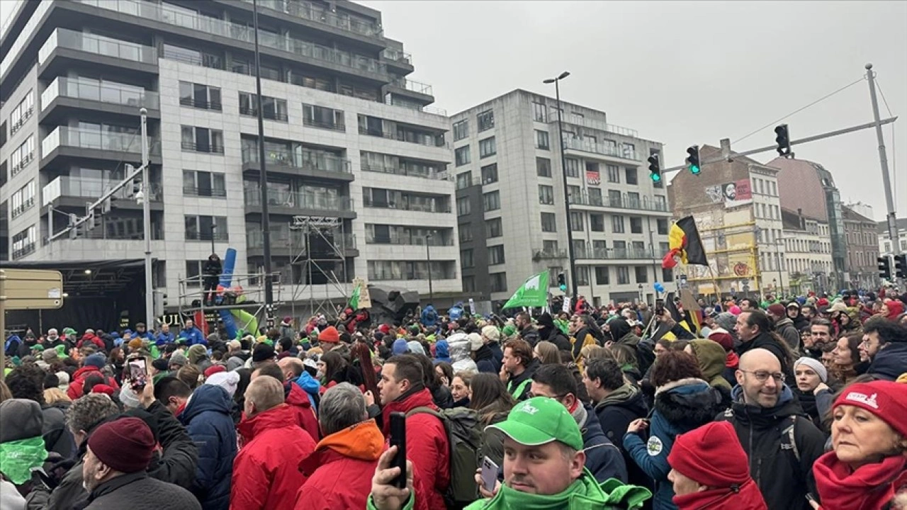 Belçika'daki bütün işçi sendikalarının çağrısı üzerine yaklaşık 60 bin kişi, Brüksel'in merkezindeki Kuzey Tren İstasyonu önünde bir araya geldi.