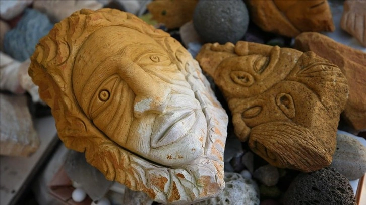 Bir arkadaşının tavsiyesiyle izlediği heykeltıraşlık konulu belgeselden etkilenen Yılmaz, 2019'da ahşap yerine ilçede bol bulunan taş malzemelere yöneldi.