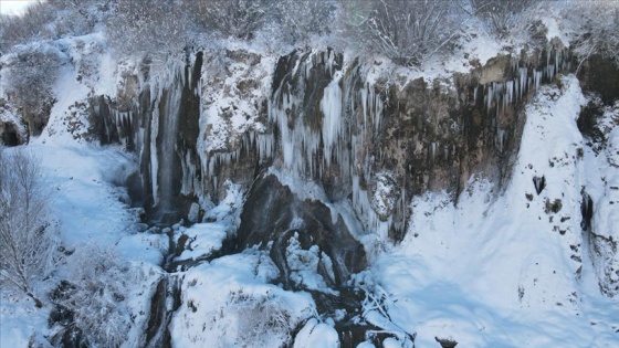 Kısmen donması nedeniyle 2-3 metre uzunluğunda buz sarkıtlarının oluştuğu şelalenin beyaz örtüyle bütünleşmesiyle kartpostallık manzaralar oluştu.