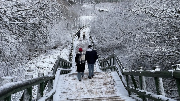Kent merkezine yaklaşık 35 kilometre uzaklıktaki milli parkta gece başlayan yağış sonrası kar kalınlığı 5 santimetreyi buldu. Ziyaretçiler, karla kaplı ağaçların oluşturduğu güzel görüntü eşliğinde göl etrafında yürüdü, iskelede fotoğraf çekildi.