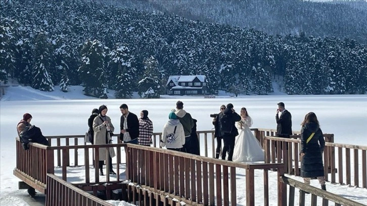 Günübirlik tatil için Gölcük Tabiat Parkı'nı tercih edenler, eşsiz manzara karşısında fotoğraf çektirdi, buz tutan gölün çevresinde yürüyüş ve piknik yaparak vakit geçirdi.