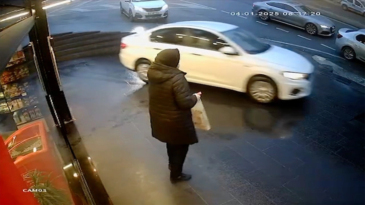 Yaşanan olay, bir iş yerinin güvenlik kamerasınca kayıt altına alındı.