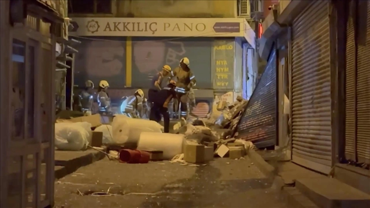 Beyoğlu'nda bir bina, zemin katındaki büfede meydana gelen patlamanın ardından çöktü
