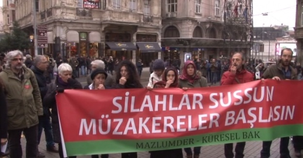 İnsan Hakları ve Mazlumlar İçin Dayanışma Derneği (MAZLUM-DER) ile Küresel Barış ve Adalet Koalisyonu (KÜRESEL-BAK) üyeleri, ülkenin doğu ve güneydoğusunda yaşanan terör olaylarına karşı güvenlik kuvvetlerinin operasyonlarını protesto etti. PKK’ya karşı yürütülen operasyonların son bulması ve yeniden müzakere sürecinin başlaması talebiyle Beyoğlu Tünel Meydanı’nda toplanan yaklaşık 50 kişi, ‘barış zinciri’ oluşturup düdük çalarak taleplerini dile getirdi.