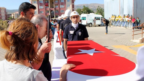 Bingöl'de, terör örgütü PKK mensubu teröristlerce yol kenarına park edilen bomba yüklü aracın infilak ettirildiği terör saldırısında şehit olan 7 polis memuru için Bingöl'de tören düzenlendi.