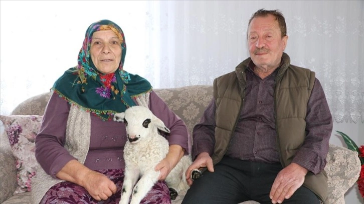 5 çocuk, 15 torun sahibi çift, koyunlarının yanı sıra evlerine alarak "Pamuk" adını verdikleri bir haftalık kuzuya da özenle bakıyor.