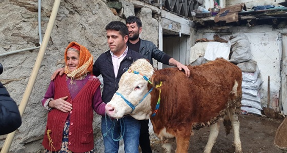 Kendisine uzanan yardım eliyle buzağılar ile birlikte 5 inek sahibi olan yaşlı kadın, hayırseverlere ve Cumhurbaşkanı Recep Tayyip Erdoğan'a teşekkür etti.