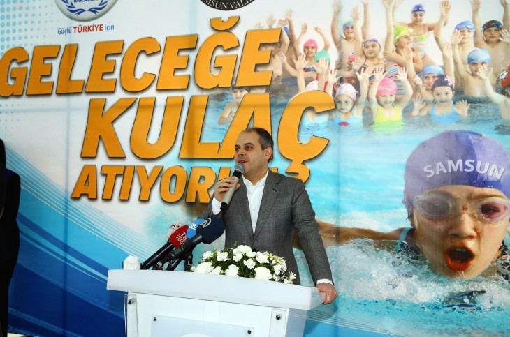 dikGAZETE-Gençlik ve Spor Bakanı Akif Çağatay Kılıç, Bakanlığın Samsun’da hayata geçirdiği Geleceğe Kulaç Atıyoruz Projesi’nin açılış törenine katıldı. İlkokul öğrencilerinin spor faaliyetlerine katılabilmeleri ve yüzme öğrenebilmeleri amacıyla başlatılan Geleceğe Kulaç Atıyoruz Projesi’nin açılış törenine Samsun 19 Mayıs Kapalı Yüzme Havuzu ev sahipliği yaptı. Törende konuşan Bakan Çağatay Kılıç, “Amacımız bir deniz kenti olan Samsun’da mutlaka her insana amatörce de olsa suyun yüzeyinde kalabilecek kadar yüzmeyi öğretebilmek” dedi.