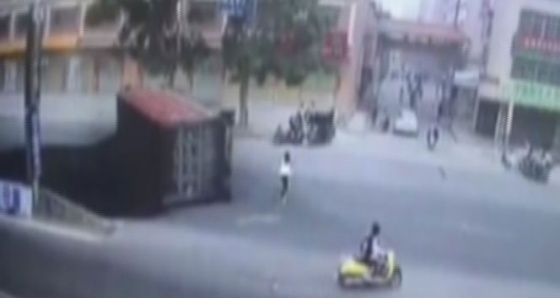Motosikletle seyahat eden iki şahıs, yan yola dönüş yapmak istedikleri sırada hızla gelen bir kamyonun altında kalıyor. Hafif bir çarpmadan sonra yere düşen ikili yara almazken, sürücüsü tarafından direksiyonu kırılan kamyon devrilmeye başlıyor. Genç kızın milimlik bir şekilde kurtulduğu kazada motosiklet sürücüsü ezilerek can veriyor.