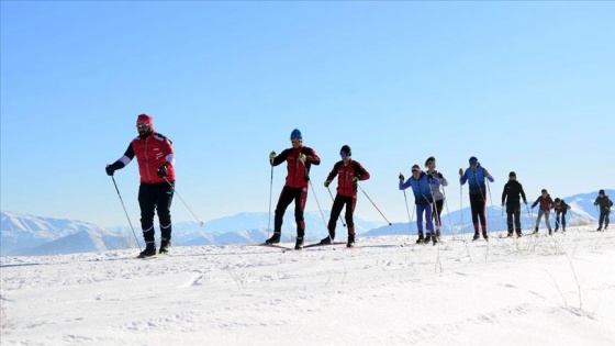 Kar kalınlığının yer yer 20 santimetreyi bulduğu Nemrut Dağı'nda sporcular, haftanın 6 günü antrenörleri eşliğinde çalışmalarını sürdürüyor.