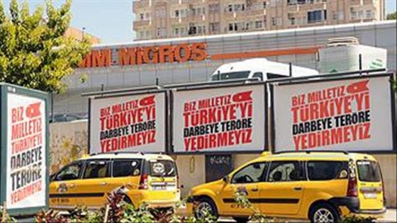 Mardin'de, Fetullahçı Terör Örgütü'nün (FETÖ) darbe girişimi ile terör örgütü PKK'nın saldırılarına tepki amaçlı olarak cadde ve sokaklardaki bilboardlara, "Biz milletiz Türkiye'yi darbeye teröre yedirmeyiz" yazılı afişler asıldı.