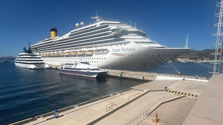 İtalyan bayraklı 272 metrelik "Costa Fortuna", Bodrum Limanı'na yanaştırıldı.