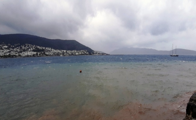 Muğla’nın Bodrum ilçesinde gece saatlerinde başlayan ve saatteki hızı 60 kilometreye kadar ulaşan fırtına etkili oluyor. Fırtına ve yağmur nedeniyle denizin rengi ise kahverengiye büründü.