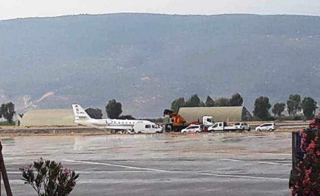 Dalaman’dan, Bodrum-Milas Havalimanı’na gelen özel bir uçak pistten çıktı. Uçağın lastiğinin patladığı öğrenilirken, havalimanı ise uçuşlara kapatıldı.