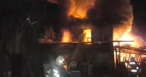 Bolu’da, ahır ve 2 katlı ahşap ev alev alev yandı