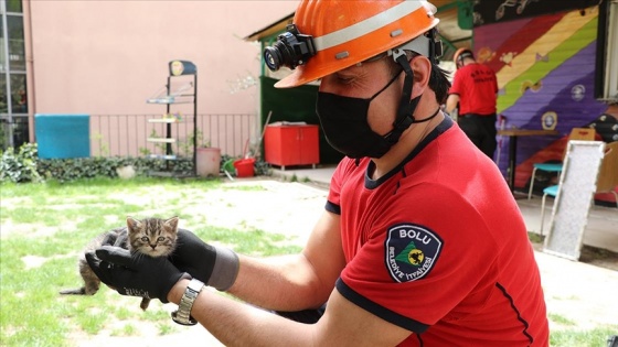 Bolu'da itfaiye ekipleri, bir büfenin çatısında mahsur kalan 3 yavru kediyi, cep telefonundan açtıkları kedi sesi ile kandırarak dışarı çıkmalarını sağladı.