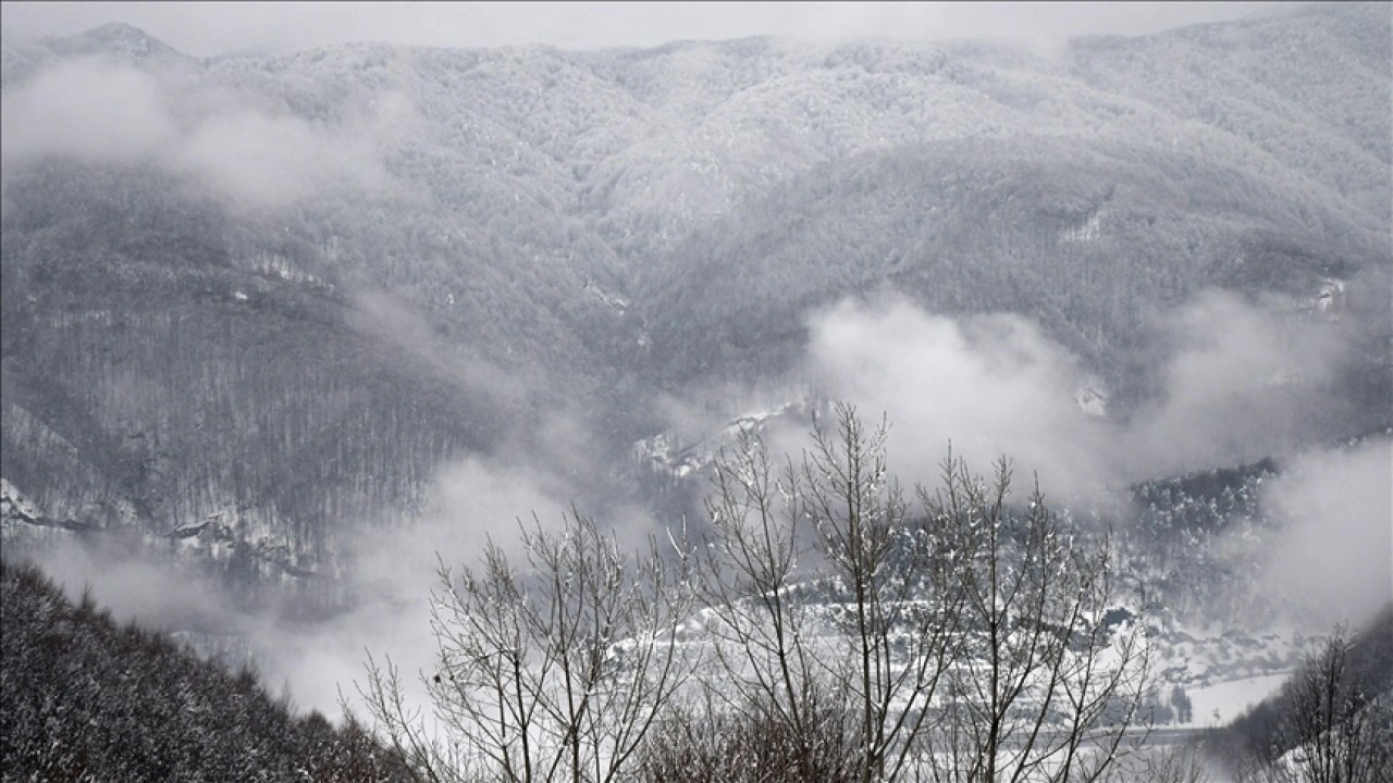 Bolu Dağı'nın eteklerini kaplayan sis, bölgenin yüksek kesiminde yer alan Bakacak mevkisinden görüntülendi.