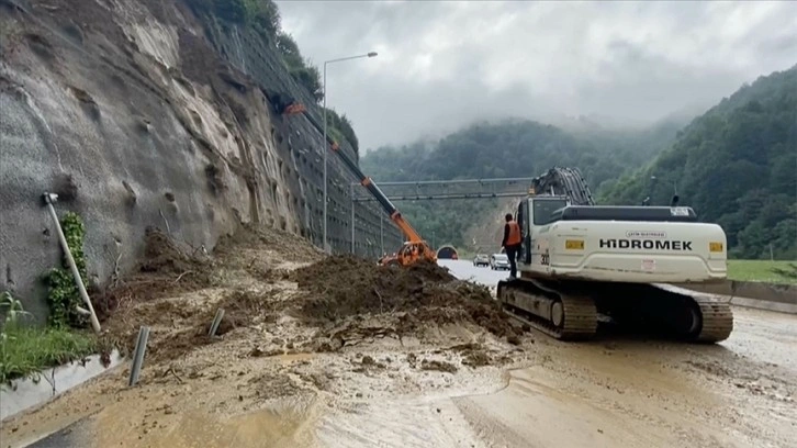 Anadolu Otoyolu Bolu Dağı Tüneli'nin yaklaşık 200 metre dışında, İstanbul istikametine doğru yolun sağında toprak kayması meydana geldi.