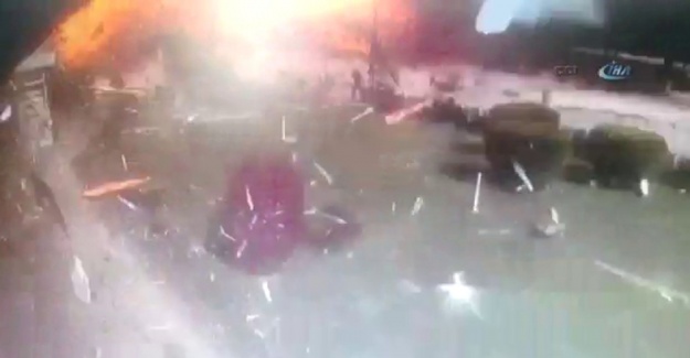 Arkasındaki beyaz bir otomobil ile birlikte art arda emniyet müdürlüğü binası önünden geçen siyah renkteki araç, seyir halindeyken patlıyor. Güvenlik kameralarına yansıyan patlama anında araçtan alev topu ve duman yükselirken, patlamanın şiddetiyle etraf toz duman oluyor. Görüntülerde, parke döşeme çalışması yürüten belediye işçilerinin de patlamayla birlikte büyük panik yaşayarak, kendilerini yere atmaları kameralara yansıyor.