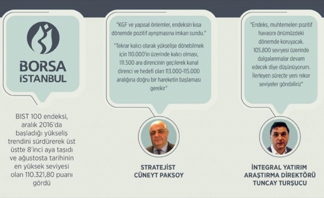Stratejist Cüneyt Paksoy, konuya ilişkin AA muhabirine yaptığı açıklamada, yurt içinde ekonomi yönetimi ve Türkiye Cumhuriyet Merkez Bankası'nın (TCMB) adımlarıyla kur, faiz ve ekonomik dinamiklerde yakalanan finansal ve istikrarlı ortamın BIST 100 endeksinde yükselişin masada kalmasına olanak sağladığını kaydetti.