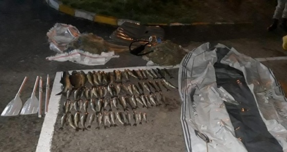 Edinilen bilgiye göre, İl Jandarma Komutanlığına bağlı ekipler, umuma açık yerlerde tombala ve kumara karşı uygulama gerçekleştirdiği sırada Hazar gölü kenarında şüpheli bir araç fark etti. Şüpheli aracın bulunduğu yere giden ekipler C.Ö'nün botla kaçak balık avladığını tespit etti. Araçta 2 metrelik şişme bot, 4 adet bota ait kurek ,1 adet bot şişirme pompası,40 kilogram sazan ve göl balığı ele geçirildi.