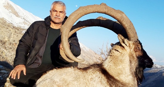 Amerikalı Avcı Patrick Barley Hulbert Çelikhan Akdağ Devlet Avlağında boynuz uzunluğu 127 santim olan 11 yaşındaki tekeyi avladı.