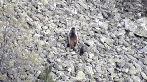 Gümüşhane'de yaban hayatı geliştirme sahasında bozayı ve yavrusu ile bir tilki görüntülendi.