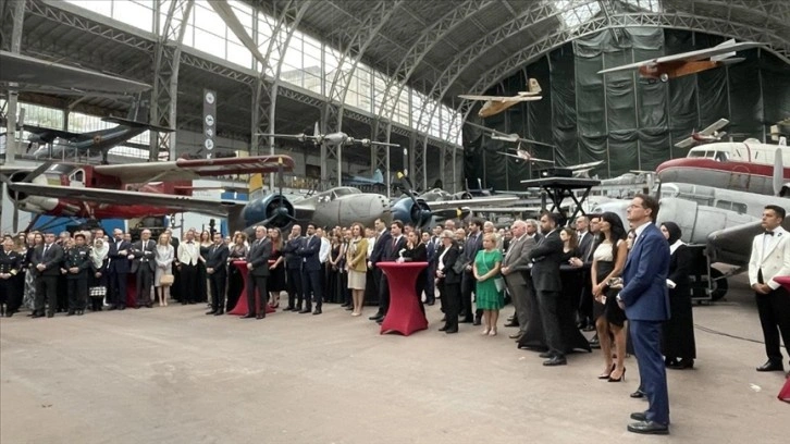 Türkiye'nin Brüksel Büyükelçisi Bekir Uysal ile Askeri Ataşe Kurmay Albay Dr. Çağrı Sağıroğlu ve eşi Dilek Sağıroğlu'nun ev sahipliğinde Belçika Kraliyet Askeri Müzesi Havacılık Salonu'nda verilen resepsiyon, saygı duruşu, İstiklal Marşı ve Belçika milli marşının okunmasıyla başladı.