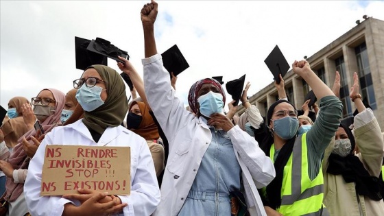 Protestocuların okudukları bildiride, Belçika'da Müslüman kadınların dini inançlarından ötürü ayrımcılığa uğradığına işaret edildi.
