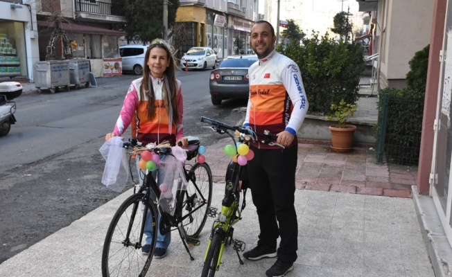 Bisiklet turunda tanışan ve nikah masasına oturan çiftin konvoyu da bisikletlilerden oluştu.