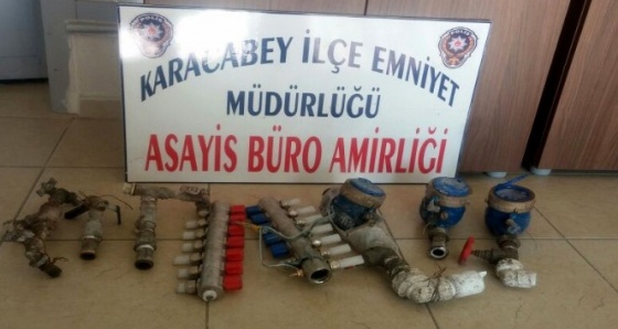 Son zamanlarda su sayacı hırsızlığı ihbarlarının artması üzerine polis harekete geçti. Ekipler, sayaçları Murat A. (25)’nın çaldığını tespit etti. Polis, zanlıyı, çaldığı sayaçları Saadet Mahallesi’nde hurdacıya satmak isterken kıskıvrak yakaladı. Murat A.’nın, 1 ay içerisinde Karacabey’in çeşitli mahallelerinde inşaat ve evlerden yaklaşık 2 bin lira değerinde 15 adet su saati çaldığı öne sürüldü. Emniyetteki işlemlerin ardından adliyeye sevk edilen Murat A. tutuklandı.