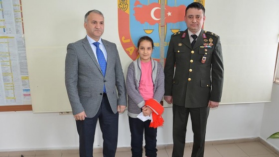 Çorum'un Alaca ilçesinde yaşayan 10 yaşındaki Elif Karakaş, Zeytin Dalı Harekatı'na katılan askerlerin üşümemesi için okul harçlığıyla ip alarak ördüğü kırmızı ve beyaz renkli kaşkol ile yazdığı mektubu, operasyona katılan askerlere ulaştırılması için İlçe Jandarma Komutanlığına teslim etti.