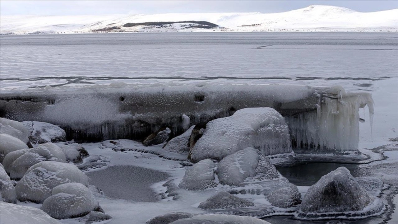 Hava sıcaklığının zaman zaman gece sıfırın altında 20 dereceye kadar düştüğü bugünlerde Çıldır Gölü'nün bir bölümü buz tuttu.