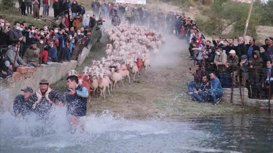 Hasanpaşa köyünde düzenlenen ve "Yünüm Böğet" adı verilen etkinlikte çobanlar, sürülerinin önünden nehre atlayarak koyunlarını sudan geçirmeye çalıştı.