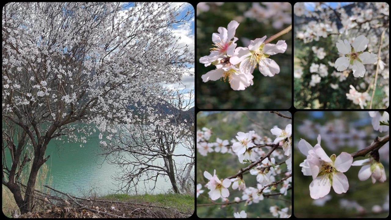 Türkiye 'nin büyük bölümünde soğuk hava etkili olurken, ilçede mevsim normallerinin üzerinde seyreden hava sıcaklıkları nedeniyle bazı badem ağaçlarının çiçek açması güzel görüntü oluşturdu.