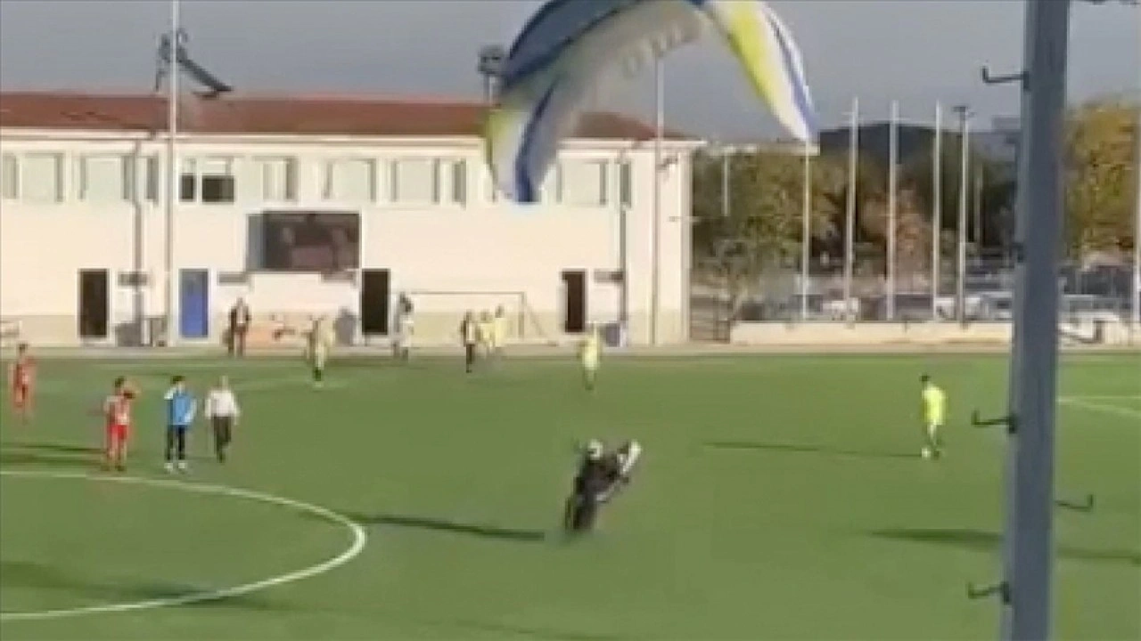 Keskin, 2 bin 200 metre yükseklikten uçuşa başladığını belirterek, "Eğitim uçuşu gerçekleştirdim. İniş planlamamı kapımın önüne yaptım. Futbol sahasında turnuva olduğu için araç yoğunluğundan evimin önüne iniş yapamadım. Bu yüzden acil inişi futbol sahasına yaptım. O sırada amatör futbol karşılaşmasının ilk yarı devre arasında olduğu için rahat bir iniş oldu. Herhangi bir sorun yaşamadık." diye konuştu.