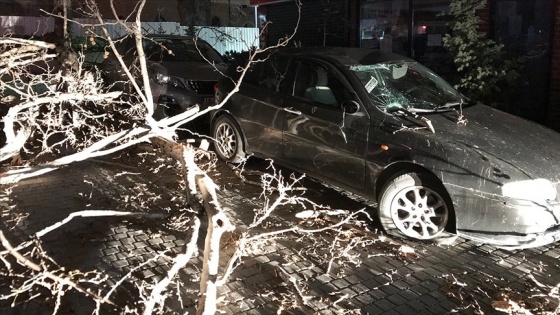 Bursa'nın Yıldırım ilçesinde Emir Sultan Meydanı'ndaki çınar, kentte etkili olan lodosla park halindeki iki otomobilin üzerine devrildi.