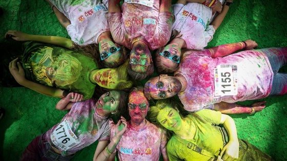 Bursa'da Soğanlı Botanik Park'ta bir araya gelen yaklaşık bin kişi, renk istasyonlarında püskürtülen tozlarla rengarenk boyandı.