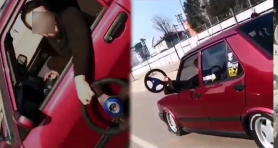 Bursa'da bir sürücü seyir halindeyken otomobilinin direksiyonunu yerinden söktü. Yanında başka bir araçla giden arkadaşı da bu görüntüleri çekip yayınladı. Sosyal medyadan gelen tepkiler üzerine Emniyet harekete geçti ve o sürücü yakalanıp ehliyetine el konuldu.